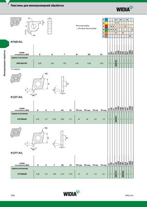 Мелкоразмерная обработка C2–C2–C2– C25–C25–C25– C3–C3–C3– CG52820783CG52830567CG52824516 CG55–CG55–CG55– CG6–CG6–CG6– CM1–CM1–CM12824523 ALO–ALO–ALO– TN7–TN7–TN7– CBN6–CBN6–CBN6– CPD1–CPD1–CPD1– Пластины для мелкоразмерной обработки P v j v j j v M j j j v v j j j j v лучший выбор K j v v j j j j v j j альтернативный выбор N v v v v j j j v S j j j v j v j H v nnFNR-R/L номер по каталогу (ISO) D S T W RC D1 правое исполнение FNR150472R* 5,00 1,85 1,00 1,20 0,60 2,50 * по запросу nnCDT-R/L номер по каталогу (ISO) D S T RC D1 TPI min TPI max TP min TP max правое исполнение CDT50022R 3,97 1,27 0,76 0,05 2,11 24 48 0,5 1,0 nnCPT-R/L номер по каталогу (ISO) D S T RC D1 TPI min TPI max TP min TP max правое исполнение CPT20052R 6,35 1,91 1,65 0,13 2,79 10 24 1,0 2,5 D56 widia.com