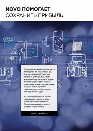 NOVO ПОМОГАЕТ СОХРАНИТЬ ПРИБЫЛЬ Обеспечение максимальной эффективности производства - это Ваша основная цель. С использованием NOVO™ Ваша цель может быть достигнута. NOVO имеет мощные цифровые инструменты, которые позволяют связать воедино процессы планирования, закупок и контролирования складских запасов, управления себестоимостью деталей и повышения производительности труда. NOVO может обеспечить Вам наличие правильного инструмента на Ваших станках в достаточном количестве. Результатом использования является ускорение каждого процесса. widia.com D59