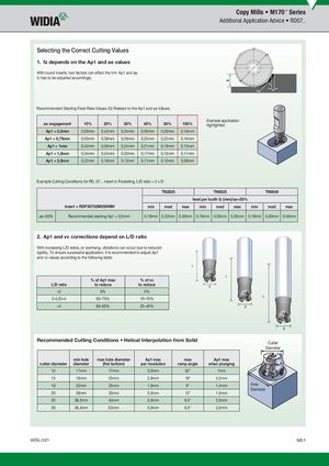 Recommended Starting Feed Rate Values (fz) Related to the Ap1 and ae Values: