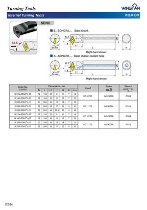 Turning Tools Internal Turning Tools ⋶ㄠ恙⎏㨎 SDNC Order No.宑庋佷䩋 Dimensions, mm InsertDLL1fHKdmin Screw Wrench IS12M-SDNCR/L-07 12 150 25 9 11 7 16 DC..0702.. IMS2506B ITK09 IS16Q-SDNCR/L-07 16 180 30 11 15 7 20 IS20R-SDNCR/L-11 20 200 35 15 18 7 25 IS25R-SDNCR/L-11 25 200 35 17 23 5 32 DC..11T3.. IMS4009A ITK15 IS32S-SDNCR/L-11 32 250 40 20.5 30 5 40 IA12M-SDNCR/L-07 12 150 25 9 11 7 16 DC..0702.. IMS2506B ITK09 IA16Q-SDNCR/L-07 16 180 30 11 15 7 20 IA20R-SDNCR/L-11 20 200 35 15 18 7 25 DC..11T3.. IMS4009A ITK15 IA25R-SDNCR/L-11 25 200 35 17 23 5 32 IC034