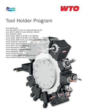 Tool Holder Program Lynx 220 M/LM Lynx 220 LMS/LY/LSY, Lynx 2100 M/MS/LY/LSY Lynx 300 M, 2600 Y, Puma GT2100, 2600 M Lynx 2600 SY (12ST) Puma 2100, 2600 (II) M/MS/Y/SY (BMT55) Puma 2100, 2600 (II) M/MS/Y/SY (BMT65) Puma 2100, 2600 Y/SY, Lynx 2600 Y/SY (16ST, BMT55) Puma 3100 M/Y, GT3100 M Puma 4100, 5100 M/LM/LY Puma 600, 700, 800 M/LM/LY Puma MX1600 ST (BMT45) Puma MX1600, 2100 ST (BMT55) Puma SMX2600, 3100 ST Puma TT1300 SY/SYY Puma TT1500, 1800, 2100 MS/SY/SYY Puma TT2000, 2500 MS/SY