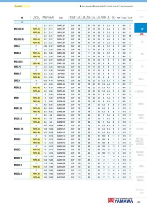 Oversized h stock standard, ) check stock EU, f check stock JP, m stock exhaustion M TCTR Ø Hole Ø(tolerance)(mm)(mm)CodeTHCHT(chamfer)LF LT THL LU LS DCON K LK(mm)(mm)(mm)(mm)(mm)(mm)(mm)(mm)NOFTypeStockIntro JIS P1 2.1 2.11 SUPP2.5F 2.5P 46 - 8.1 14 29 3 2.5 5 2 001 f M2.5X0.45 P2(P1+15) 2.1 2.11 SUPQ2.5F 2.5P 46 - 8.1 14 29 3 2.5 5 2 001 f SP P3(P1+30) 2.1 2.11 SUPR2.5F 2.5P 46 - 8.1 14 29 3 2.5 5 2 001 f JIS P1 2.2 2.21 SUPP2.6F 2.5P 46 - 8.1 14 29 3 2.5 5 2 001 ) M2.6X0.45 P2(P1+15) 2.2 2.21 SUPQ2.6F 2.5P 46 - 8.1 14 29 3 2.5 5 2 001 f P3(P1+30) 2.2 2.21 SUPR2.6F 2.5P 46 - 8.1 14 29 3 2.5 5 2 001 f SL 3M0.6 P1 2.45 2.47 SUPP3.0H 2.5P 46 - 9 14 26 4 3.2 6 3 001 f P1 2.5 2.56 SUPP3.0G 2.5P 46 - 9 14 26 4 3.2 6 3 001 f M3X0.5 P2(P1+15) 2.5 2.56 SUPQ3.0G 2.5P 46 - 9 14 26 4 3.2 6 3 001 f PO P3(P1+30) 2.5 2.56 SUPR3.0G 2.5P 46 - 9 14 26 4 3.2 6 3 001 f P1 2.9 2.97 SUPP3.5H 2.5P 52 - 11 16 29 5 4 7 3 001 ) M3.5X0.6 P3(P1+30) 2.9 2.97 SUPR3.5H 2.5P 52 - 11 16 29 5 4 7 3 001 f 4M0.75 P2 3.3 3.33 SUPQ4.0J 2.5P 52 - 11 17 29 5 4 7 3 001 f ST P2 3.3 3.38 SUPQ4.0I 2.5P 52 - 11 17 29 5 4 7 3 001 f M4X0.7 P3(P2+20) 3.3 3.38 SUPR4.0I 2.5P 52 - 11 17 29 5 4 7 3 001 f P4(P2+40) 3.3 3.38 SUPS4.0I 2.5P 52 - 11 17 29 5 4 7 3 001 f 5M0.9 P2 4.15 4.19 SUPQ5.0L 2.5P 60 - 13 22 33 5.5 4.5 7 3 001 f ROLL P2 4.2 4.28 SUPQ5.0K 2.5P 60 - 13 22 33 5.5 4.5 7 3 001 f M5X0.8 P3(P2+20) 4.2 4.28 SUPR5.0K 2.5P 60 - 13 22 33 5.5 4.5 7 3 001 f P4(P2+40) 4.2 4.28 SUPS5.0K 2.5P 60 - 13 22 33 5.5 4.5 7 3 001 f CARBIDE P2 5 5.09 SUPQ6.0M 2.5P 62 - 15 26 33 6 4.5 7 3 001 f M6X1 P3(P2+20) 5 5.09 SUPR6.0M 2.5P 62 - 15 26 33 6 4.5 7 3 001 f P4(P2+40) 5 5.09 SUPS6.0M 2.5P 62 - 15 26 33 6 4.5 7 3 001 f P2 6.8 6.85 SUMQ8.0N 2.5P 70 - 19 - 36 6.2 5 8 3 013 f LONG M8X1.25 P3(P2+20) 6.8 6.85 SUMR8.0N 2.5P 70 - 19 - 36 6.2 5 8 3 013 f P4(P2+40) 6.8 6.85 SUMS8.0N 2.5P 70 - 19 - 36 6.2 5 8 3 013 f P2 8.5 8.6 SUMQ010O 2.5P 75 - 23 - 38 7 5.5 8 3 013 f HAND M10X1.5 P3(P2+20) 8.5 8.6 SUMR010O 2.5P 75 - 23 - 38 7 5.5 8 3 013 f TAPS P4(P2+40) 8.5 8.6 SUMS010O 2.5P 75 - 23 - 38 7 5.5 8 3 013 f P2 10.3 10.36 SUMQ012P 2.5P 82 - 26 - 42 8.5 6.5 9 3 013 f M12X1.75 P3(P2+20) 10.3 10.36 SUMR012P 2.5P 82 - 26 - 42 8.5 6.5 9 3 013 f EG (STI) P4(P2+40) 10.3 10.36 SUMS012P 2.5P 82 - 26 - 42 8.5 6.5 9 3 013 f P2 12 12.12 SUMQ014Q 2.5P 88 - 26 - 45 10.5 8 11 3 013 f M14X2 P3(P2+20) 12 12.12 SUMR014Q 2.5P 88 - 26 - 45 10.5 8 11 3 013 f SPECIAL P4(P2+40) 12 12.12 SUMS014Q 2.5P 88 - 26 - 45 10.5 8 11 3 013 f THREADS,GAUGES P2 14 14.12 SUMQ016Q 2.5P 95 - 26 - 48 12.5 10 13 3 013 f M16X2 P3(P2+20) 14 14.12 SUMR016Q 2.5P 95 - 26 - 48 12.5 10 13 3 013 f P4(P2+40) 14 14.12 SUMS016Q 2.5P 95 - 26 - 48 12.5 10 13 3 013 f THREAD P3 15.5 15.63 SUMR018R 2.5P 100 - 33 - 51 14 11 14 4 013 f MILLS M18X2.5 P4(P3+20) 15.5 15.63 SUMS018R 2.5P 100 - 33 - 51 14 11 14 4 013 f P3 17.5 17.63 SUMR020R 2.5P 105 - 33 - 50 15 12 15 4 013 f M20X2.5 P4(P3+20) 17.5 17.63 SUMS020R 2.5P 105 - 33 - 50 15 12 15 4 013 f DIES P3 19.5 19.63 SUMR022R 2.5P 115 - 33 - 55 17 13 16 4 013 f M22X2.5 P4(P3+20) 19.5 19.63 SUMS022R 2.5P 115 - 33 - 55 17 13 16 4 013 f P5(P3+40) 19.5 19.63 SUMT022R 2.5P 115 - 33 - 55 17 13 16 4 013 f CENTER DRILLS Technical info 169