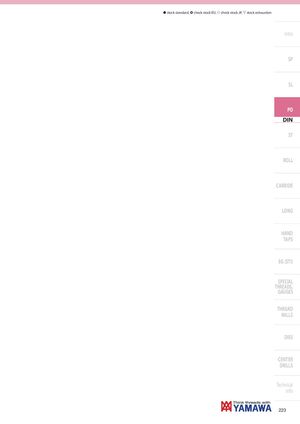 h stock standard, ) check stock EU, f check stock JP, m stock exhaustion Intro SP SL PO DIN ST ROLL CARBIDE LONG HAND TAPS EG (STI) SPECIAL THREADS, GAUGES THREAD MILLS DIES CENTER DRILLS Technical info 223