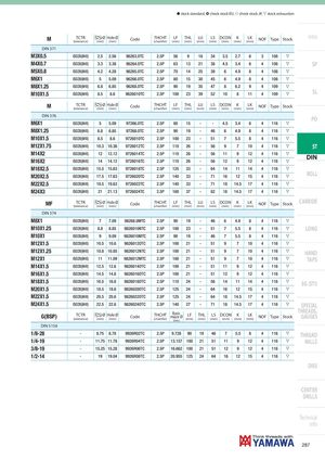 h stock standard, ) check stock EU, f check stock JP, m stock exhaustion M TCTR Ø Hole Ø(tolerance)(mm)(mm)CodeTHCHT(chamfer)LF(mm)THL(mm) LU(mm) LS DCON K(mm)(mm)(mm)LK(mm)NOFTypeStock Intro DIN 371 M3X0.5 ISO2X(6HX) 2.5 2.56 96263.0TC 2.5P 56 9 18 34 3.5 2.7 6 3 108 m M4X0.7 ISO2X(6HX) 3.3 3.38 96264.0TC 2.5P 63 13 21 38 4.5 3.4 6 4 108 m SP M5X0.8 ISO2X(6HX) 4.2 4.28 96265.0TC 2.5P 70 14 25 39 6 4.9 8 4 108 m M6X1 ISO2X(6HX) 5 5.09 96266.0TC 2.5P 80 15 30 45 6 4.9 8 4 108 m M8X1.25 ISO2X(6HX) 6.8 6.85 96268.0TC 2.5P 90 19 35 47 8 6.2 9 4 109 m M10X1.5 ISO2X(6HX) 8.5 8.6 9626010TC 2.5P 100 23 39 52 10 8 11 4 109 m SL M TCTR Ø Hole Ø(tolerance)(mm)(mm)CodeTHCHT(chamfer)LF(mm)THL(mm) LU(mm) LS DCON K(mm)(mm)(mm)LK(mm)NOFTypeStock DIN 376 PO M6X1 ISO2X(6HX) 5 5.09 97266.0TC 2.5P 80 15 - - 4.5 3.4 6 4 116 m M8X1.25 ISO2X(6HX) 6.8 6.85 97268.0TC 2.5P 90 19 - 46 6 4.9 8 4 116 m M10X1.5 ISO2X(6HX) 8.5 8.6 9726010TC 2.5P 100 23 - 51 7 5.5 8 4 116 m M12X1.75 ISO2X(6HX) 10.3 10.36 9726012TC 2.5P 110 26 - 56 9 7 10 4 116 m ST M14X2M16X2 ISO2X(6HX) 12 12.12 9726014TC 2.5P 110 26 - 56 11 9 12 4 116 mISO2X(6HX)1414.129726016TC2.5P11026-56129124116mDIN M18X2.5 ISO2X(6HX) 15.5 15.63 9726018TC 2.5P 125 33 - 64 14 11 14 4 116 m M20X2.5 ISO2X(6HX) 17.5 17.63 9726020TC 2.5P 140 33 - 71 16 12 15 4 116 m ROLL M22X2.5 ISO2X(6HX) 19.5 19.63 9726022TC 2.5P 140 33 - 71 18 14.5 17 4 116 m M24X3 ISO2X(6HX) 21 21.13 9726024TC 2.5P 160 37 - 82 18 14.5 17 4 116 m MF TCTR Ø Hole Ø(tolerance)(mm)(mm)CodeTHCHT(chamfer)LF(mm)THL(mm) LU(mm) LS DCON K(mm)(mm)(mm)LK(mm)NOFTypeStock CARBIDE DIN 374 M8X1 ISO2X(6HX) 7 7.09 98268.0MTC 2.5P 90 19 - 46 6 4.9 8 4 116 m M10X1.25 ISO2X(6HX) 8.8 8.85 9826010NTC 2.5P 100 23 - 51 7 5.5 8 4 116 m LONG M10X1 ISO2X(6HX) 9 9.09 9826010MTC 2.5P 90 19 - 46 7 5.5 8 4 116 m M12X1.5 ISO2X(6HX) 10.5 10.6 9826012OTC 2.5P 100 21 - 51 9 7 10 4 116 m M12X1.25 ISO2X(6HX) 10.8 10.85 9826012NTC 2.5P 100 21 - 51 9 7 10 4 116 m HAND M12X1 ISO2X(6HX) 11 11.09 9826012MTC 2.5P 100 21 - 51 9 7 10 4 116 m TAPS M14X1.5 ISO2X(6HX) 12.5 12.6 9826014OTC 2.5P 100 21 - 51 11 9 12 4 116 m M16X1.5 ISO2X(6HX) 14.5 14.6 9826016OTC 2.5P 100 21 - 51 12 9 12 4 116 m M18X1.5 ISO2X(6HX) 16.5 16.6 9826018OTC 2.5P 110 24 - 56 14 11 14 4 116 m EG (STI) M20X1.5 ISO2X(6HX) 18.5 18.6 9826020OTC 2.5P 125 24 - 64 16 12 15 4 116 m M22X1.5 ISO2X(6HX) 20.5 20.6 9826022OTC 2.5P 125 24 - 64 18 14.5 17 4 116 m M24X1.5 ISO2X(6HX) 22.5 22.6 9826024OTC 2.5P 140 27 - 71 18 14.5 17 4 116 m SPECIAL G(BSP) TCTR Ø Hole Ø(tolerance)(mm)(mm)CodeTHCHT(chamfer)Basicmajor Ø(mm)LF(mm)THL(mm)LSDCON K(mm)(mm)(mm)LK(mm)NOFTypeStock THREADS,GAUGES DIN 5156 1/8-28 - 8.75 8.78 9926R02TC 2.5P 9.728 90 19 46 7 5.5 8 4 116 m THREAD 1/4-19 - 11.75 11.78 9926R04TC 2.5P 13.157 100 21 51 11 9 12 4 116 m MILLS 3/8-19 - 15.25 15.28 9926R06TC 2.5P 16.662 100 21 51 12 9 12 4 116 m 1/2-14 - 19 19.04 9926R08TC 2.5P 20.955 125 24 64 16 12 15 4 116 m DIES CENTER DRILLS Technical info 287