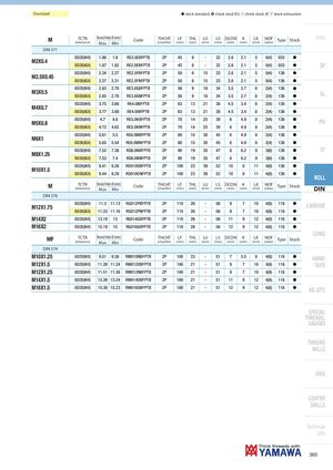 Oversized h stock standard, ) check stock EU, f check stock JP, m stock exhaustion M TCTR Bored Hole Ø (mm)(tolerance)MaxMinCodeTHCHT(chamfer)LF(mm)THL(mm) LU(mm) LS DCON K(mm)(mm)(mm)LK(mm)NOF(Lobes)TypeStock Intro DIN 371 ISO2X(6HX) 1.86 1.8 RE2.0EBFPTB 2P 45 8 - 32 2.8 2.1 5 0(4) 025 h M2X0.4 ISO3X(6GX) 1.87 1.82 RE2.0ENFPTB 2P 45 8 - 32 2.8 2.1 5 0(4) 025 h SP ISO2X(6HX) 2.34 2.27 RE2.5FBFPTB 2P 50 8 15 33 2.8 2.1 5 0(4) 136 h M2.5X0.45 ISO3X(6GX) 2.37 2.31 RE2.5FNFPTB 2P 50 8 15 33 2.8 2.1 5 0(4) 136 h ISO2X(6HX) 2.83 2.76 RE3.0GBFPTB 2P 56 9 18 34 3.5 2.7 6 2(4) 136 h M3X0.5 ISO3X(6GX) 2.85 2.78 RE3.0GNFPTB 2P 56 9 18 34 3.5 2.7 6 2(4) 136 h SL ISO2X(6HX) 3.75 3.66 RE4.0IBFPTB 2P 63 13 21 38 4.5 3.4 6 2(4) 136 h M4X0.7 ISO3X(6GX) 3.77 3.68 RE4.0INFPTB 2P 63 13 21 38 4.5 3.4 6 2(4) 136 h M5X0.8 ISO2X(6HX) 4.7 4.6 RE5.0KBFPTB 2P 70 14 25 39 6 4.9 8 2(4) 136 h PO ISO3X(6GX) 4.72 4.62 RE5.0KNFPTB 2P 70 14 25 39 6 4.9 8 2(4) 136 h ISO2X(6HX) 5.61 5.5 RE6.0MBFPTB 2P 80 15 30 45 6 4.9 8 2(4) 136 h M6X1 ISO3X(6GX) 5.65 5.54 RE6.0MNFPTB 2P 80 15 30 45 6 4.9 8 2(4) 136 h ISO2X(6HX) 7.52 7.38 RD8.0NBFPTB 2P 90 19 35 47 8 6.2 9 3(6) 136 h ST M8X1.25 ISO3X(6GX) 7.53 7.4 RD8.0NNFPTB 2P 90 19 35 47 8 6.2 9 3(6) 136 h ISO2X(6HX) 9.41 9.26 RD010OBFPTB 2P 100 23 39 52 10 8 11 4(8) 136 h M10X1.5 ISO3X(6GX) 9.44 9.29 RD010ONFPTB 2P 100 23 39 52 10 8 11 4(8) 136 h ROLL M TCTR Bored Hole Ø (mm)(tolerance)MaxMinCodeTHCHT(chamfer)LF(mm)THL(mm) LU(mm) LS DCON K(mm)(mm)(mm)LK(mm)NOF(Lobes)TypeStock DIN DIN 376 M12X1.75 ISO2X(6HX) 11.3 11.13 RG012PBFPTB 2P 110 26 - 56 9 7 10 4(8) 116 h CARBIDE ISO3X(6GX) 11.33 11.16 RG012PNFPTB 2P 110 26 - 56 9 7 10 4(8) 116 h M14X2 ISO2X(6HX) 13.19 13 RG014QBFPTB 2P 110 26 - 56 11 9 12 4(8) 116 h M16X2 ISO2X(6HX) 15.19 15 RG016QBFPTB 2P 110 26 - 56 12 9 12 4(8) 116 h MF TCTR Bored Hole Ø (mm)(tolerance)MaxMinCode LONGTHCHT(chamfer)LF(mm)THL(mm)LU(mm)LSDCONK(mm)(mm)(mm)LK(mm)NOF(Lobes)TypeStock DIN 374 M10X1.25 ISO2X(6HX) 9.51 9.38 RM010NBFPTB 2P 100 23 - 51 7 5.5 8 4(8) 116 h HAND M12X1.5 ISO2X(6HX) 11.39 11.24 RM012OBFPTB 2P 100 21 - 51 9 7 10 4(8) 116 h TAPS M12X1.25 ISO2X(6HX) 11.51 11.38 RM012NBFPTB 2P 100 21 - 51 9 7 10 4(8) 116 h M14X1.5 ISO2X(6HX) 13.39 13.24 RM014OBFPTB 2P 100 21 - 51 11 9 12 4(8) 116 h M16X1.5 ISO2X(6HX) 15.38 15.23 RM016OBFPTB 2P 100 21 - 51 12 9 12 4(8) 116 h EG (STI) SPECIAL THREADS, GAUGES THREAD MILLS DIES CENTER DRILLS Technical info 365