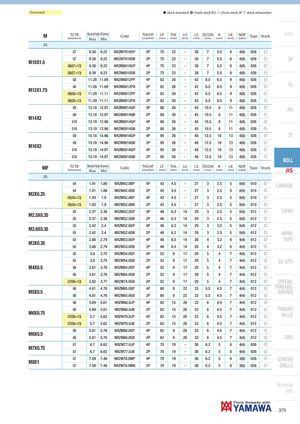 Oversized h stock standard, ) check stock EU, f check stock JP, m stock exhaustion M TCTR Bored Hole Ø (mm)(tolerance)MaxMinCodeTHCHT(chamfer)LF(mm)THL(mm) LU(mm) LS DCON K(mm)(mm)(mm)LK(mm)NOF(Lobes)TypeStock Intro JIS G7 9.38 9.22 NRZM7010OP 4P 75 23 - 38 7 5.5 8 4(8) 026 f M10X1.5 G7 9.38 9.22 NRZM7010OB 2P 75 23 - 38 7 5.5 8 4(8) 026 f SP G8(G7+13) 9.39 9.23 NRZM8010OP 4P 75 23 - 38 7 5.5 8 4(8) 026 f G8(G7+13) 9.39 9.23 NRZM8010OB 2P 75 23 - 38 7 5.5 8 4(8) 026 f G8 11.28 11.09 NRZM8012PP 4P 82 26 - 42 8.5 6.5 9 4(8) 026 f G8 11.28 11.09 NRZM8012PB 2P 82 26 - 42 8.5 6.5 9 4(8) 026 f SL M12X1.75 G9(G8+13) 11.29 11.11 NRZM9012PP 4P 82 26 - 42 8.5 6.5 9 4(8) 026 f G9(G8+13) 11.29 11.11 NRZM9012PB 2P 82 26 - 42 8.5 6.5 9 4(8) 026 f G9 13.18 12.97 NRZM9014QP 4P 88 26 - 45 10.5 8 11 4(8) 026 f PO G9 13.18 12.97 NRZM9014QB 2P 88 26 - 45 10.5 8 11 4(8) 026 f M14X2 G10 13.19 12.98 NRZM0014QP 4P 88 26 - 45 10.5 8 11 4(8) 026 f G10 13.19 12.98 NRZM0014QB 2P 88 26 - 45 10.5 8 11 4(8) 026 f G9 15.18 14.96 NRZM9016QP 4P 95 26 - 48 12.5 10 13 4(8) 026 f ST G9 15.18 14.96 NRZM9016QB 2P 95 26 - 48 12.5 10 13 4(8) 026 f M16X2 G10 15.19 14.97 NRZM0016QP 4P 95 26 - 48 12.5 10 13 4(8) 026 f G10 15.19 14.97 NRZM0016QB 2P 95 26 - 48 12.5 10 13 4(8) 026 f ROLL MF TCTR Bored Hole Ø (mm)(tolerance)MaxMinCodeTHCHT(chamfer)LF(mm)THL(mm) LU(mm) LS DCON K(mm)(mm)(mm)LK(mm)NOF(Lobes)TypeStock JIS JIS G4 1.91 1.89 NRZM42.0BP 4P 42 4.5 - 27 3 2.5 5 0(4) 010 f CARBIDE G4 1.91 1.89 NRZM42.0BB 2P 42 4.5 - 27 3 2.5 5 0(4) 010 f M2X0.25 G5(G4+13) 1.93 1.9 NRZM52.0BP 4P 42 4.5 - 27 3 2.5 5 0(4) 010 f G5(G4+13) 1.93 1.9 NRZM52.0BB 2P 42 4.5 - 27 3 2.5 5 0(4) 010 f G5 2.37 2.36 NRZM52.5DP 4P 46 6.3 14 29 3 2.5 5 0(4) 012 f LONG M2.5X0.35 G5 2.37 2.36 NRZM52.5DB 2P 46 6.3 14 29 3 2.5 5 0(4) 012 f G5 2.42 2.4 NRZM52.6DP 4P 46 6.3 14 29 3 2.5 5 0(4) 012 f M2.6X0.35 G5 2.42 2.4 NRZM52.6DB 2P 46 6.3 14 29 3 2.5 5 0(4) 012 f HAND G5 2.86 2.79 NRZM53.0DP 4P 46 6.5 14 26 4 3.2 6 4(4) 012 f TAPS M3X0.35 G5 2.86 2.79 NRZM53.0DB 2P 46 6.5 14 26 4 3.2 6 4(4) 012 f G5 3.8 3.75 NRZM54.0GP 4P 52 9 17 29 5 4 7 4(4) 012 f G5 3.8 3.75 NRZM54.0GB 2P 52 9 17 29 5 4 7 4(4) 012 f EG (STI) M4X0.5 G6 3.81 3.76 NRZM64.0GP 4P 52 9 17 29 5 4 7 4(4) 012 f G6 3.81 3.76 NRZM64.0GB 2P 52 9 17 29 5 4 7 4(4) 012 f G7(G6+13) 3.82 3.77 NRZM74.0GB 2P 52 9 17 29 5 4 7 4(4) 012 f SPECIAL M5X0.5 G6 4.81 4.76 NRZM65.0GP 4P 60 9 22 33 5.5 4.5 7 4(4) 012 f THREADS,GAUGES G6 4.81 4.76 NRZM65.0GB 2P 60 9 22 33 5.5 4.5 7 4(4) 012 f G6 5.69 5.61 NRZM66.0JP 4P 62 15 26 33 6 4.5 7 4(4) 012 f G6 5.69 5.61 NRZM66.0JB 2P 62 15 26 33 6 4.5 7 4(4) 012 f THREAD M6X0.75 G7(G6+13) 5.7 5.62 NRZM76.0JP 4P 62 15 26 33 6 4.5 7 4(4) 012 f MILLS G7(G6+13) 5.7 5.62 NRZM76.0JB 2P 62 15 26 33 6 4.5 7 4(4) 012 f G6 5.81 5.76 NRZM66.0GP 4P 62 9 26 33 6 4.5 7 4(4) 012 f M6X0.5 G6 5.81 5.76 NRZM66.0GB 2P 62 9 26 33 6 4.5 7 4(4) 012 f DIES G7 6.7 6.62 NRZM77.0JP 4P 70 19 - 36 6.2 5 8 4(4) 026 f M7X0.75 G7 6.7 6.62 NRZM77.0JB 2P 70 19 - 36 6.2 5 8 4(4) 026 f M8X1 G7 7.59 7.48 NRZM78.0MP 4P 70 19 - 36 6.2 5 8 3(6) 026 f CENTERG77.597.48NRZM78.0MB2P7019-366.2583(6)026fDRILLS Technical info 375