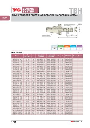 BORINGSYSTEM TBH ДВУХ-РЕЗЦОВАЯ РАСТОЧНАЯ ОПРАВКА (МАЛОГО ДИАМЕТРА) Расточные системы Ст. точн.DIN 69871конусаБалансир. G Частота вращ. Системаохлаждения - SK AT3 – – – ■DIN 69871-SK Ед.изм.:мм Модель D LМин - МаксБАЗОВАЯОПРАВКАРАСТОЧНАЯГОЛОВКА D1 L1 ПЛАСТИНА Вес (кг) В наличии SK30 TBH25 90 25 34 90 SK30 SAS22 40 SAS22 TBH25 50 22 50 CCMT060200 SK30 TBH25 140 25 34 140 SK30 SAS22 90 SAS22 TBH25 50 22 50 CCMT060200 SK30 TBH34 110 34 50 110 SK30 SAS31 50 SAS31 TBH34 60 31 60 CCMT060200 SK30 TBH34 150 34 50 150 SK30 SAS31 90 SAS31 TBH34 60 31 60 CCMT060200 SK40 TBH25 100 25 34 100 SK40 SAS22 50 SAS22 TBH25 50 22 50 CCMT060200 SK40 TBH25 140 25 34 140 SK40 SAS22 90 SAS22 TBH25 50 22 50 CCMT060200 SK40 TBH25 155 25 34 155 SK40 SAS22 105 SAS22 TBH25 50 22 50 CCMT060200 SK40 TBH34 120 34 50 120 SK40 SAS31 60 SAS31 TBH34 60 31 60 CCMT060200 SK40 TBH34 160 34 50 160 SK40 SAS31 100 SAS31 TBH34 60 31 60 CCMT060200 SK40 TBH34 180 34 50 180 SK40 SAS31 120 SAS31 TBH34 60 31 60 CCMT060200 SK40 TBH50 140 50 76 140 SK40 SAS42 60 SAS42 TBH50 80 42 80 CCMT09T300 SK40 TBH50 185 50 76 185 SK40 SAS42 105 SAS42 TBH50 80 42 80 CCMT09T300 SK40 TBH50 200 50 76 200 SK40 SAS42 120 SAS42 TBH50 80 42 80 CCMT09T300 SK40 TBH76 180 76 116 180 SK40 SAS65 70 SAS65 TBH76 110 65 110 CCMT120400 SK40 TBH76 200 76 116 200 SK40 SAS65 90 SAS65 TBH76 110 65 110 CCMT120400 SK40 TBH76 220 76 116 220 SK40 SAS65 110 SAS65 TBH76 110 65 110 CCMT120400 SK40 TBH76 240 76 116 240 SK40 SAS65 130 SAS65 TBH76 110 65 110 CCMT120400 SK50 TBH25 110 25 34 110 SK50 SAS22 60 SAS22 TBH25 50 22 50 CCMT060200 SK50 TBH25 130 25 34 130 SK50 SAS22 80 SAS22 TBH25 50 22 50 CCMT060200 SK50 TBH25 150 25 34 150 SK50 SAS22 100 SAS22 TBH25 50 22 50 CCMT060200 SK50 TBH34 130 34 50 130 SK50 SAS31 70 SAS31 TBH34 60 31 60 CCMT060200 SK50 TBH34 160 34 50 160 SK50 SAS31 100 SAS31 TBH34 60 31 60 CCMT060200 SK50 TBH34 190 34 50 190 SK50 SAS31 130 SAS31 TBH34 60 31 60 CCMT060200 SK50 TBH50 150 50 76 150 SK50 SAS42 70 SAS42 TBH50 80 42 80 CCMT09T300 SK50 TBH50 190 50 76 190 SK50 SAS42 110 SAS42 TBH50 80 42 80 CCMT09T300 SK50 TBH50 240 50 76 240 SK50 SAS42 150 SAS42 TBH50 80 42 80 CCMT09T300 SK50 TBH76 200 76 116 200 SK50 SAS65 90 SAS65 TBH76 110 65 110 CCMT120400 SK50 TBH76 240 76 116 240 SK50 SAS65 130 SAS65 TBH76 110 65 110 CCMT120400 SK50 TBH76 280 76 116 280 SK50 SAS65 170 SAS65 TBH76 110 65 110 CCMT120400 SK50 TBH116 225 116 156 225 SK50 SAS84 80 SAS84 TBH116 145 84 145 CCMT120400 SK50 TBH116 275 116 156 275 SK50 SAS84 130 SAS84 TBH116 145 84 145 CCMT120400 SK50 TBH116 325 116 156 325 SK50 SAS84 180 SAS84 TBH116 145 84 145 CCMT120400 1744